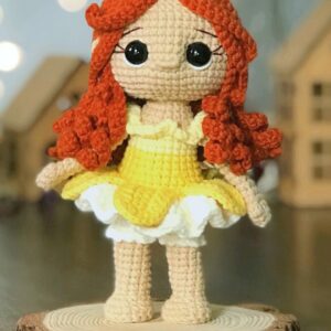 🧵 Bônus: Girassol, a aventureira: aproximadamente 17cm de altura